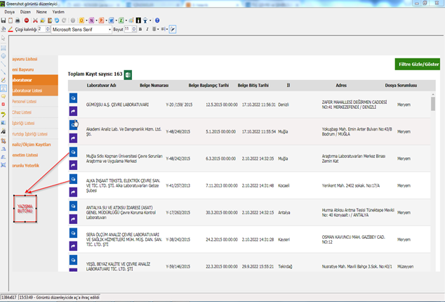 Emisyon, İmisyon ve Gürültü Kapsamlarında 2015,2016,2017 yıllarına ait Ölçüm Yönetim Giriş Paneline girilmiş olan tüm ülkemiz genelindeki; Tesis, ölçüm tarihi ve ölçülen parametrelere ilişkin envanter bilgileri Yetkili Çevre Laboratuvarlarına Çevre Bilgi Sistemi (http://online.cevre.gov.tr) Laboratuvar Yetkilendirme uygulaması E-Yeterlik modülü yazışma butonu üzerinden gönderilmiştir. Yetkili laboratuvarlara duyurulur.